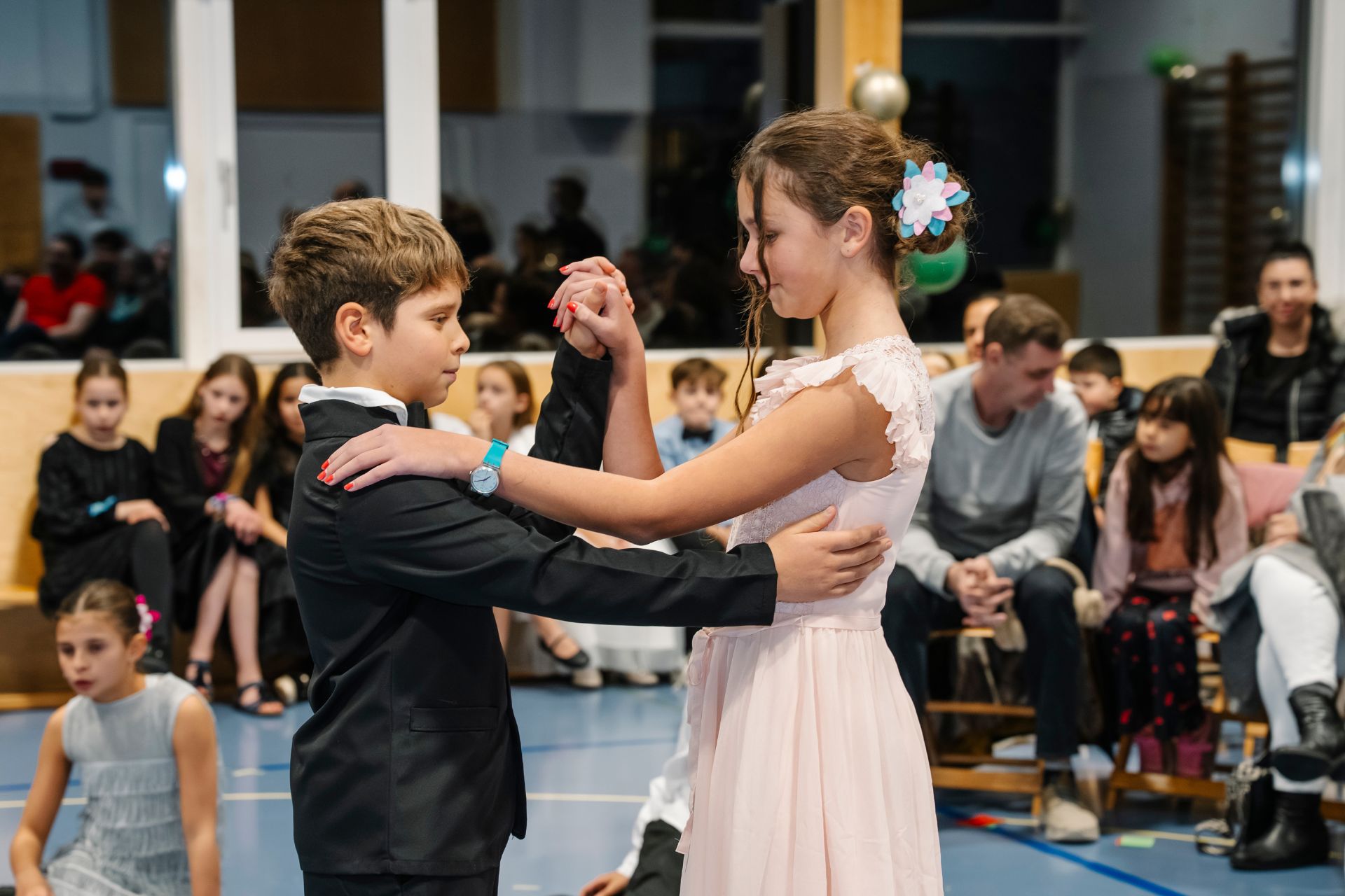 Das Abschlussfest bildet den Höhepunkt des Programms – das Ziel, auf das die Schülerinnen und Schüler hinarbeiten. Sie führen alle erlernten Tänze vor und präsentieren Beiträge, die sie im Unterricht erarbeitet haben. Gedichte, Lieder, Sketches, Tagebucheinträge und Interviews ermöglichen einen Blick hinter die Kulissen. Sie geben einen lebendigen Einblick in das, was die Kinder während des Programms erlebt und gelernt haben. Voller Abwechslung, Glanz und Hochgefühl ist das Abschlussfest für Kinder, Eltern und Verwandte ein eindrucksvolles Erlebnis und erfüllt alle Beteiligten mit grossem Stolz auf das Erreichte. Beim anschliessenden Apéro werden der Erfolg und die gemeinsame Zeit miteinander gebührend gefeiert.